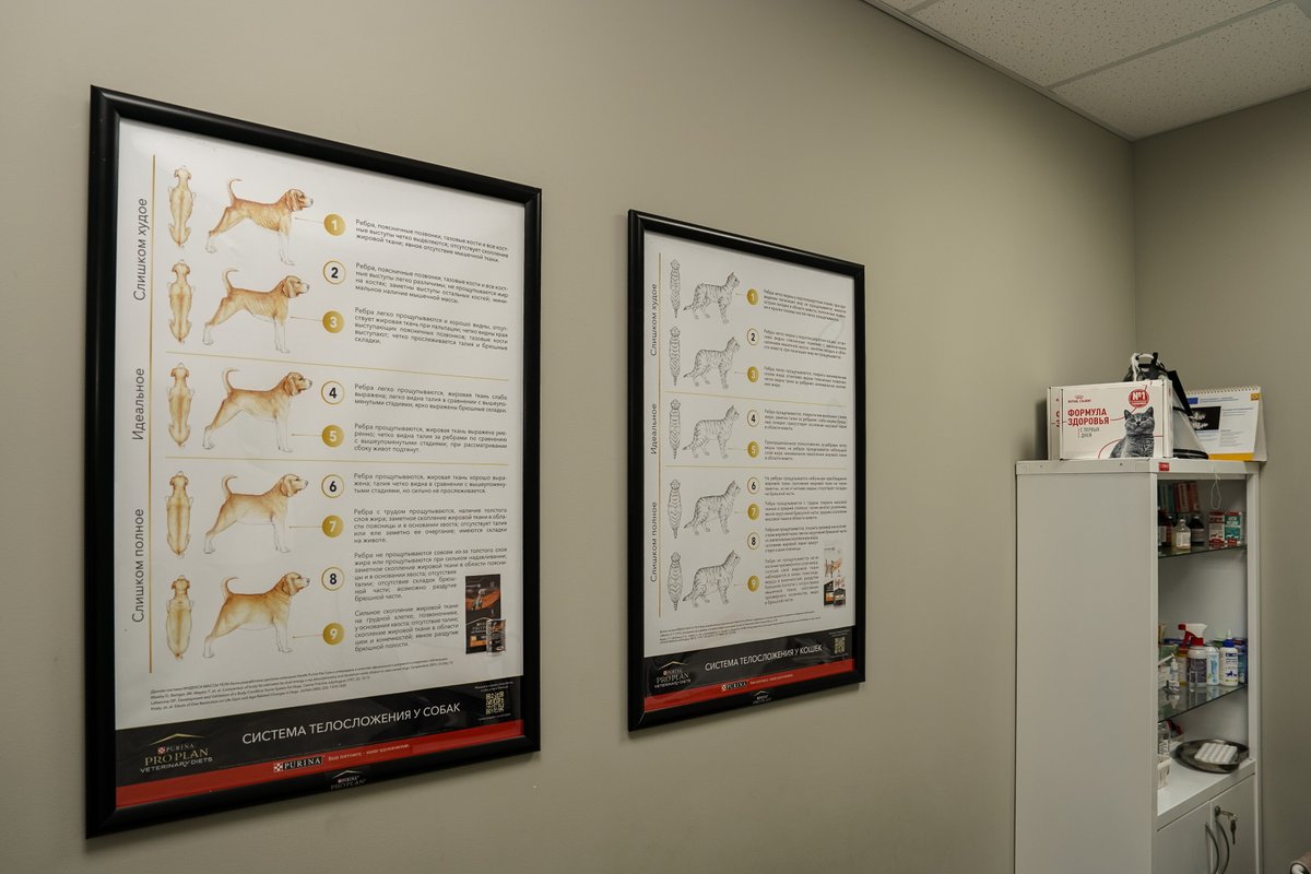 Среди наших услуг анализы на пироплазмоз, УЗИ, рентген, анестезия, вакцинация кошек, собак и кроликов, прививка против бешенства, взвешивание животных, дегельминтизация кошек и собак, кастрация, проведение кесарева сечения, обработка от блох, прием родов у животных, стерилизация, удаление зубного камня, удаление зубов, извлечение клещей, уколы, чистка зубов, чипирование кошек и собак, услуги груминга (в том числе маникюр, купание, подстригание когтей, стрижка и чистка ушей), эвтаназия и кремация животных, приём ветеринарного дерматолога, ортопеда, офтальмолога, стоматолога, терапевта, хирурга, гинеколога и диагноста, оформление ветпаспорта, диспансеризация животных, инфекционный стационар для животных, лечение грызунов и морских свинок, подготовка к выставке.
